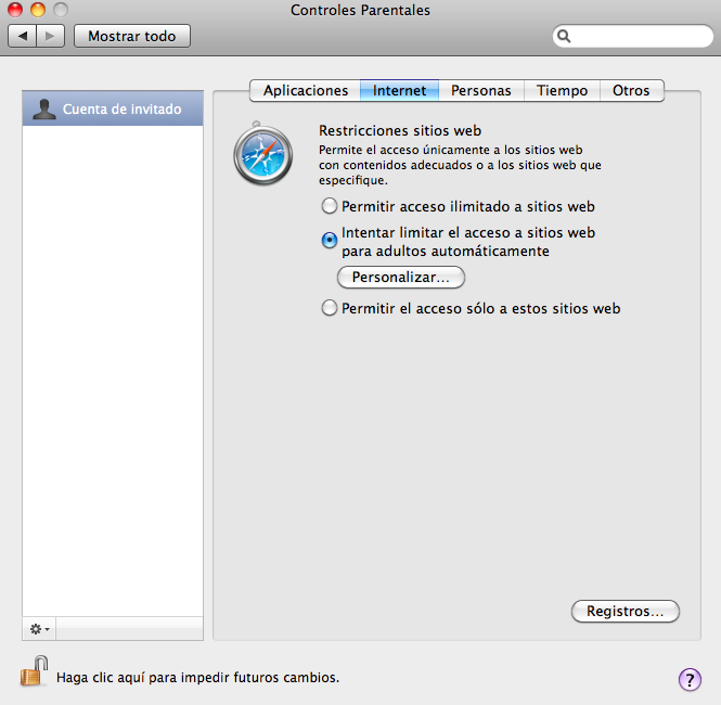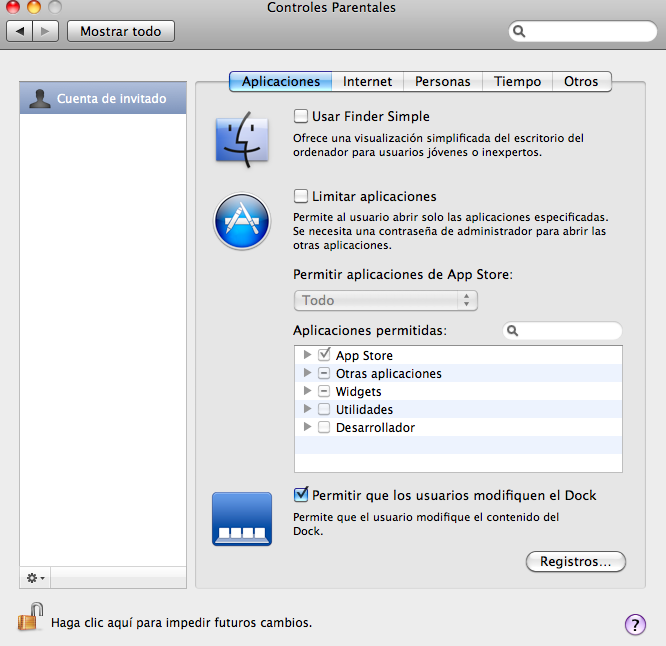 En OSX, hay una opción poco conocida, o al menos entre las personas a las que he preguntado (si, era para esto ;P) que nos da la posibilidad de activar una cuenta especial de invitado. Esta cuenta, con carácter temporal, no tendrá acceso a los ficheros del resto de usuarios que podamos tener en el equipo y que todo lo que haga, será eliminado en cuanto salga de su sesión.