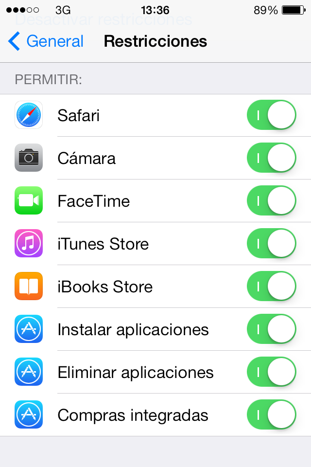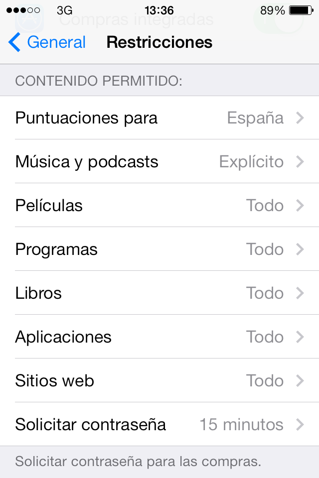 Restricciones en iOS7 - Acceso a contenido