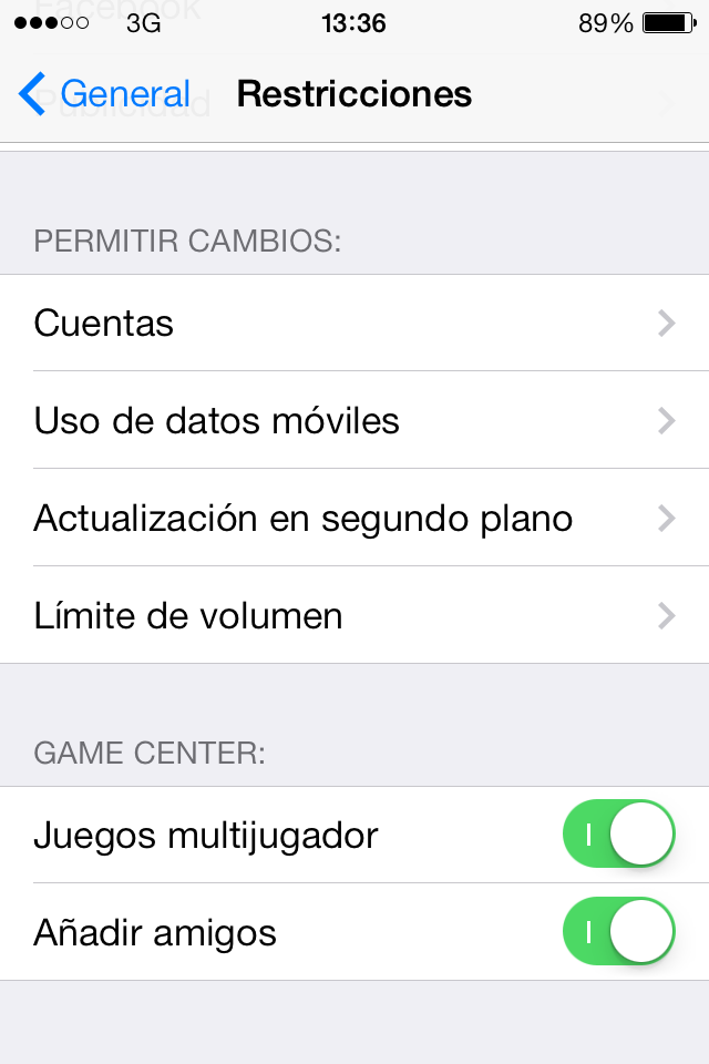 iOS7, contiene muchas posibilidades de limitar el uso para menores. Si bien estas opciones no son tan flexibles como las aplicaciones de Android, pueden servir para mantener a raya determinadas conexiones a recursos no deseados así como al uso de determinadas aplicaciones.